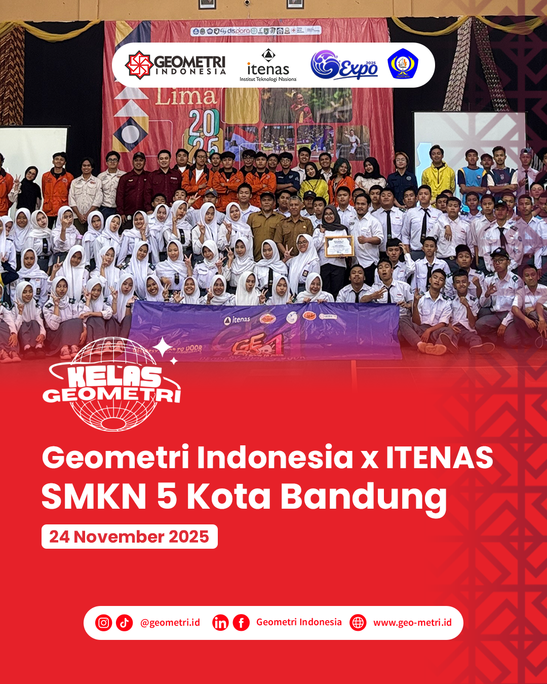 Kelas kolaborasi antara Geometri Indonesia dan G-Expo 2025 Institut Teknologi Nasional Bandung (ITENAS) sukses digelar pada 27 November 2025 di SMK PU...